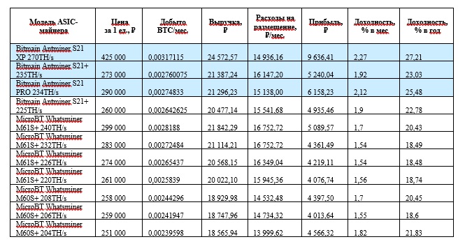 • Bitmain Antminer S21 PRO 234 TH/s — 2,12% в месяц / 25,48% годовых