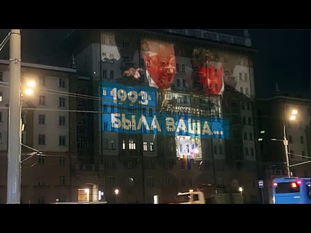 В минувший понедельник российская арт-группа «Re:ванш» всколыхнула Интернет, устроив световую проекцию на здание дипломатической миссии США в РФ. Сначала на фасаде объекта можно было увидеть Конституцию России, фоном для которой выступили бывший американский президент Билл Клинтон, экс-глава РФ Борис Ельцин и надпись «1993 год. Была ваша…». После на объект с помощью света были выведены люди с «триколором» и надписью «2020 год. Станет наша!».