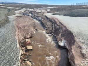 Сезонный паводок привел к помутнению реки Далдыкан близ Норильска