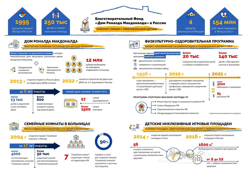 Всего в течение 2021 года с помощью разных акций и пожертвований от посетителей «Макдоналдс», а также партнеров и компаний-доноров на проекты Фонда было собрано 154 миллиона рублей.