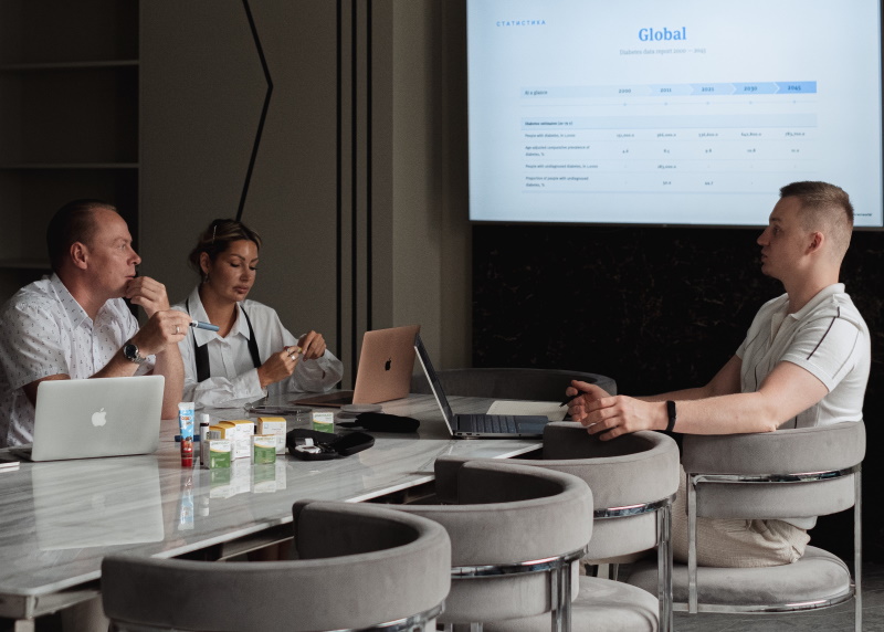 Наш опыт позволил увидеть наилучший путь решения проблемы. Яна — действующий IT-предприниматель, владелец собственного онлайн-проекта, прошедшего с 2019 года все известные кризисы. Олег в прошлом был управляющим венчурного фонда в сфере искусственного интеллекта, 10 лет руководил компанией, которая с нуля дошла до многомиллиардных оборотов. Объединив усилия, мы в короткий срок собрали команду опытных специалистов и разработали концепцию IT-проекта для больных диабетом.