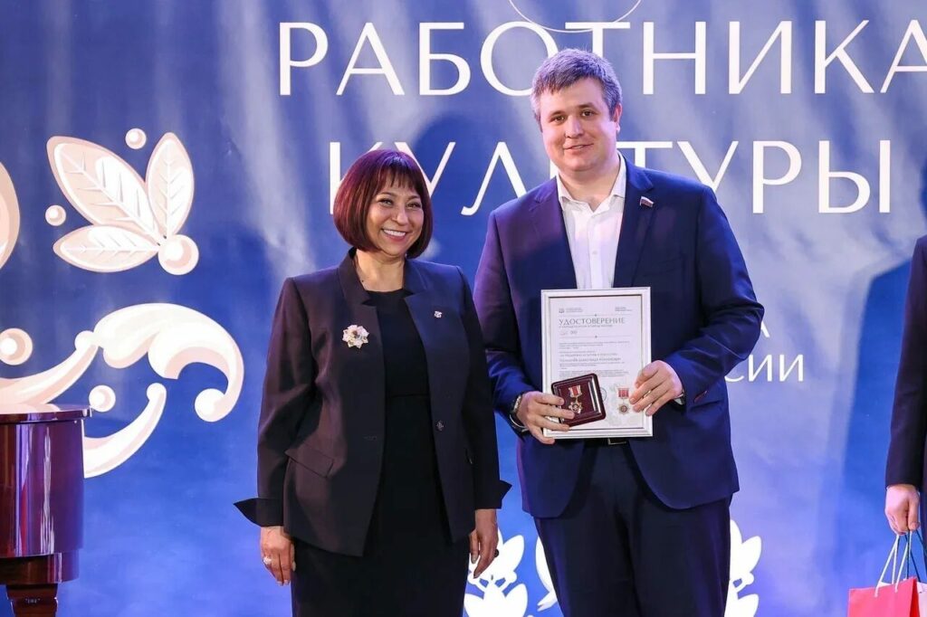 Изотова Юлия Николаевна, начальник отдела по развитию партнерской сети Департамента воспитательной работы, просветительских проектов и специальных образовательных программ в сфере культуры Министерства культуры РФ зачитала поздравление с профессиональным праздником работников культуры Заместителя Министра культуры РФ Першина С.В. и наградила членов Союза нагрудными знаками. В церемонии награждения принимали участие — Толмачёв Александр Романович, Заместитель председателя Комитета по молодёжной политике Государственной Думы Федерального Собрания Российской Федерации, Лещун Константин Станиславович, Заместитель директора Департамента культуры Министерства обороны Российской Федерации и другие почетные гости. Также награды вручали Солонкин Александр Викторович и Тарханова Мария Евгеньевна, со многими из которых они познакомились еще в первой части мероприятия.