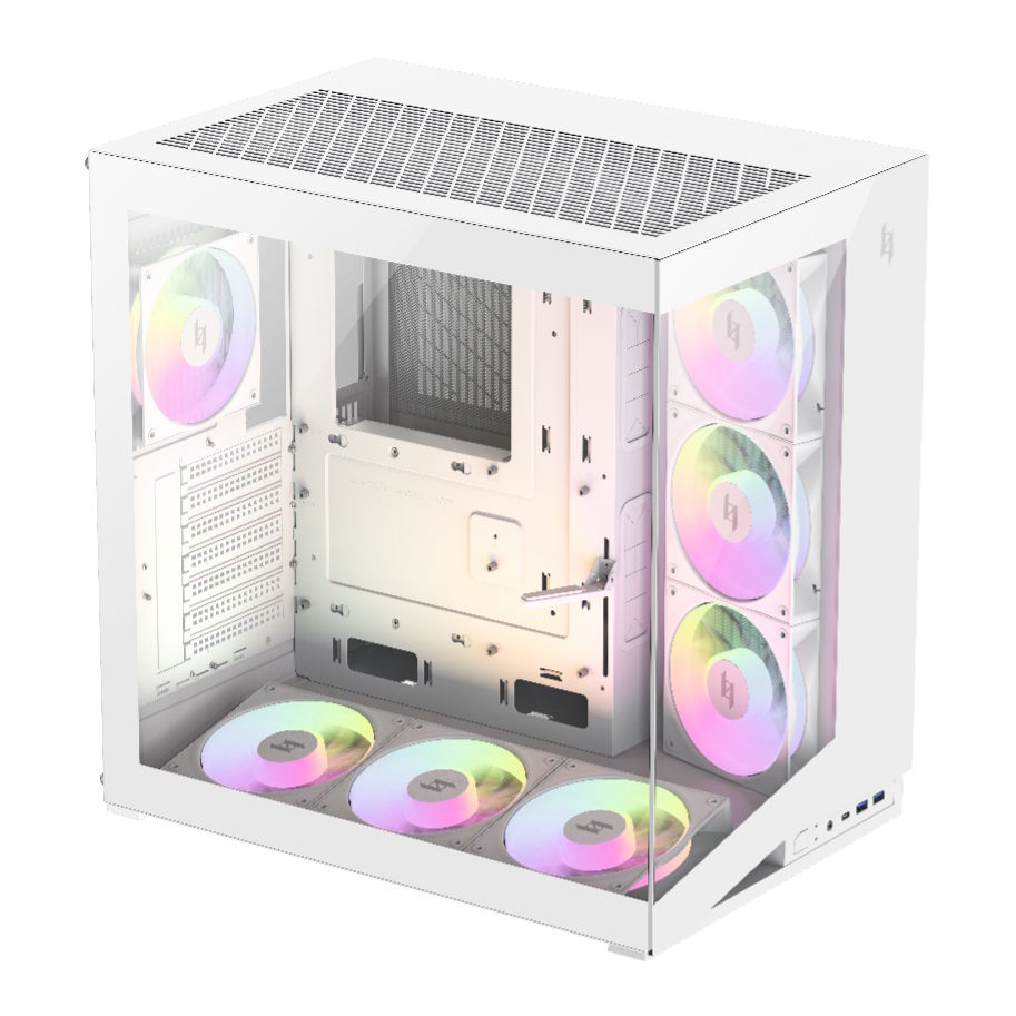 Двухкамерный корпус GAMEMAX NEX C56 поставляется с семью предустановленными 120-мм ARGB-вентиляторами, которые обеспечивают надежное охлаждение прямо из коробки. Сетчатая верхняя панель поддерживает установку 360-мм радиаторов AIO, что позволяет добиться наиболее эффективного рассеивания тепла и гарантирует стабильную рабочую температуру для всех комплектующих системы при любых нагрузках.