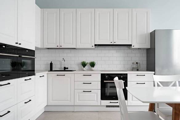 Проект кухонного гарнитура для «Доброго дома» разработал дизайнер бренда Анатолий Попов. Выбор пал на кухню в неоклассическом стиле светлого цвета, который добавляет помещению воздуха и пространства.