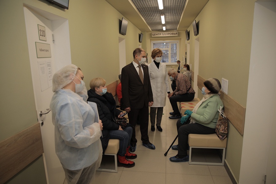 Михаил Романов осмотрел прививочный кабинет, побеседовал с докторами и пациентами поликлиники. Врачи рассказали парламентарию о правилах введения вакцины, ограничениях, возможных побочных эффектах и рекомендациях, которые медики выдают тем, кто привился.