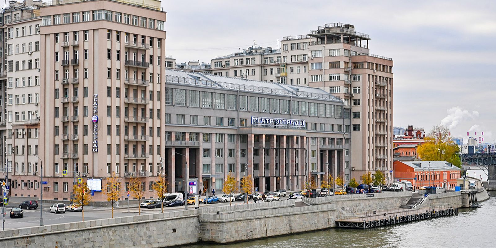 Московский государственный театр эстрады на Берсеневской набережной — часть объекта культурного наследия регионального значения «Комплекс “Дома Правительства”», 1928–1931 годов, созданный архитектором Борисом Иофаном. Помимо реставрации фасадов и интерьеров, специалисты на основе архивных данных раскрыли панорамные витражные окна, которые были заложены в советское время.