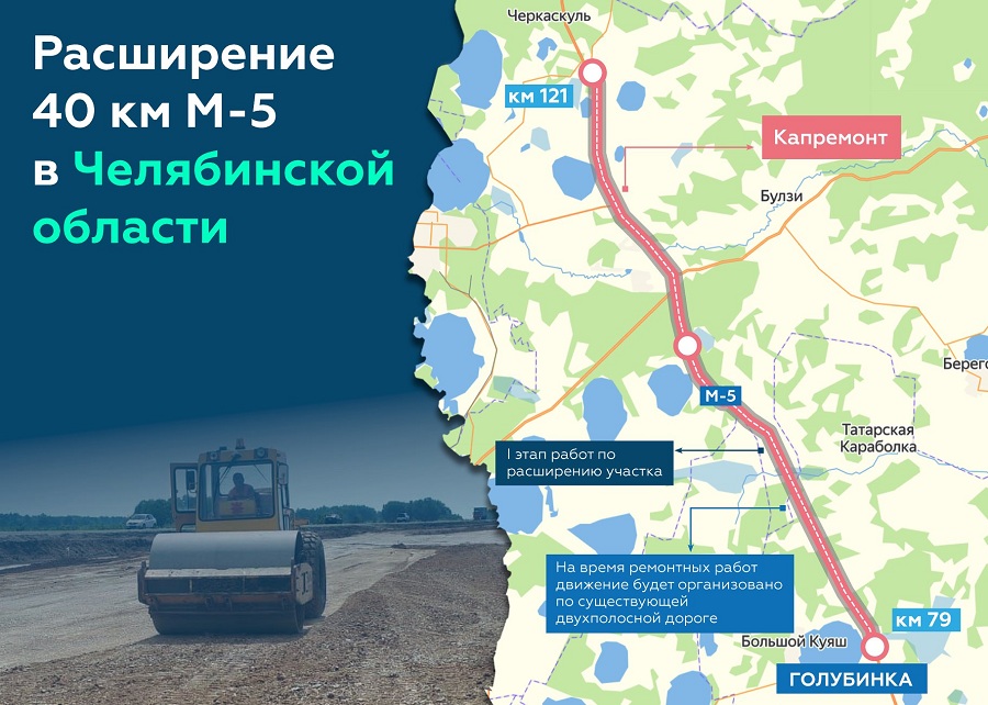 В Челябинской области будет расширено 40 километров трассы М-5 на участке от 79 до 121 километра до четырех полос. Реконструкция трассы пройдет в четыре этапа и завершится к 2022 году. Об этом сообщил официальный аккаунт Росавтодора в Facebook.