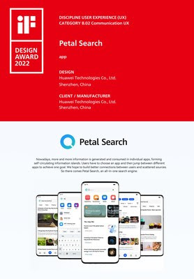 Поисковый сервис Petal Search был удостоен награды iF DESIGN AWARD 2022 в категории «Пользовательский опыт» (UX).