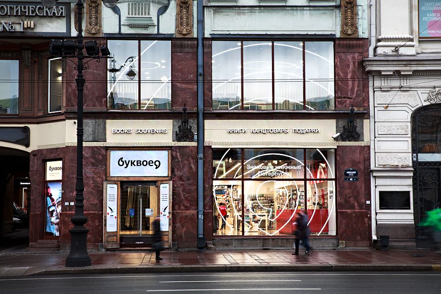 «К этому проекту мы вместе с руководством сети подходили долго и крайне ответственно, понимая весь масштаб. Самый крупный, трёхэтажный «Буквоед» был важен как с точки зрения размера, так и с точки зрения места расположения. По сути, флагман на Невском должен был поставить самую крупную «ЗАПЯТУЮ» в нашем ребрендинге», – отметил Михаил Губергриц, генеральный и творческий директор брендингового агентства LINII.