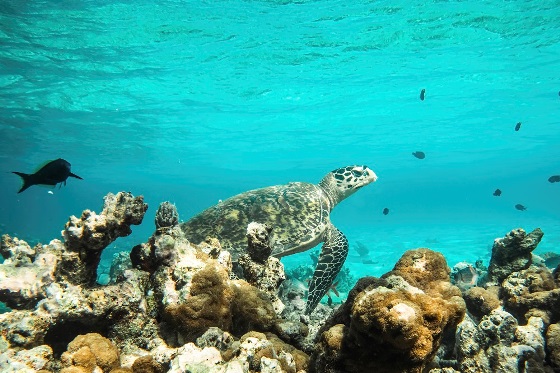 Морские черепахи — еще одни жители вод Индийского океана. Ориентироваться под водой им помогает магнитное поле Земли, поэтому черепахи всегда безошибочно возвращаются в нужное им место. Будучи неуклюжими и очень медлительными на суше, под водой они превращаются в грациозных животных, которые плавают довольно быстро, хотя гребут только передними лапами — настолько быстро, что развивают скорость до 35 километров в час!