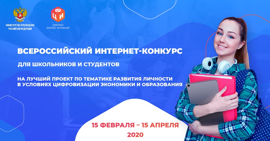 15 февраля 2020 года стартует прием заявок на всероссийский конкурс проектов по тематике развития личности в условиях цифровизации экономики и образования среди российских старшеклассников (10 -11 классы) и студентов.