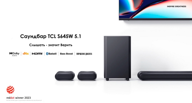 TCL, второй в мире бренд телевизоров и первый в мире бренд в сегменте 98-дюймовых телевизоров, c гордостью объявляет о победе своего нового саундбара для домашнего кинотеатра серии TCL S6 в престижной премии в области дизайна Red Dot Award в 2023 году. Данная награда стала очередным подтверждением профессионализма TCL в разработке выдающихся решений в области домашних развлечений для потребителей по всему миру.