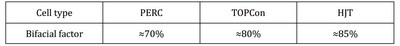 Таблица 2.1 Двусторонний коэффициент модулей PERC/TOPCon/HJT