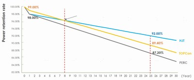 Поскольку описанные выше результаты оцениваются с учетом текущего снижения мощности на 2% в течение первого года, прирост выработки электроэнергии будет более заметным, поскольку совершенствование технологии и материалов для герметизации элементов и модулей может привести к меньшему снижению мощности элементов HJT в первый год.