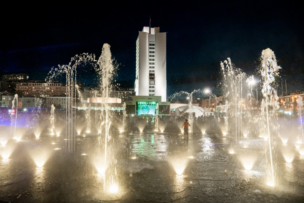 2 сентября на центральной площади Владивостока прошла торжественная церемония открытия первого в Приморском крае мультимедийного пешеходного фонтана, сооружённого при поддержке Сбера.