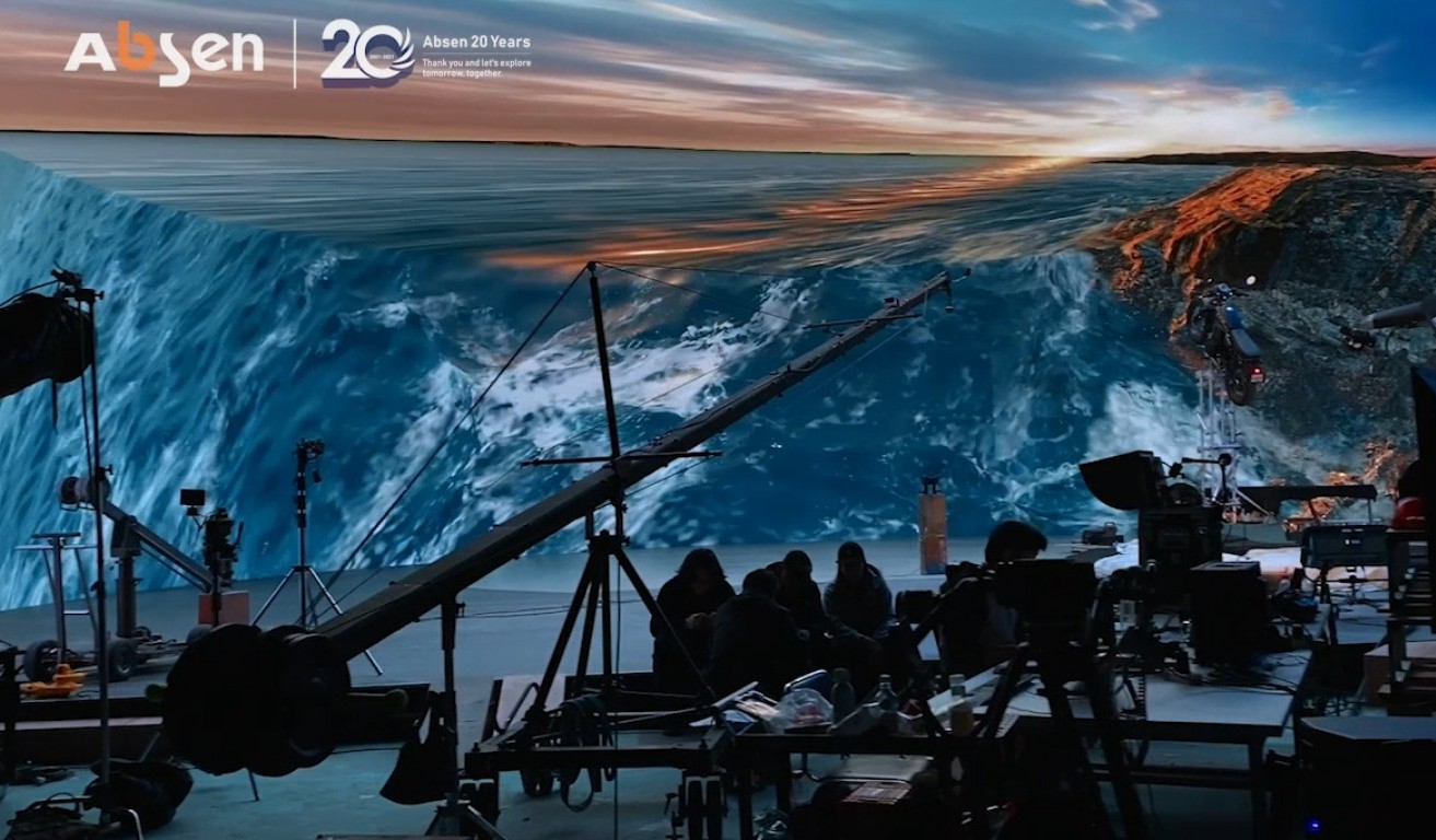 В последние годы в центре внимания китайского и мирового рынков профессионального кинопроизводства оказалась перспективная технология создания виртуальных студий на основе светодиодных панелей. Виртуальные студии на основе светодиодных панелей, объединяющие в себе новейшую технологию отображения с использованием светодиодных средств, систему виртуальных камер и систему рендеринга в реальном времени, позволяют реализовывать невиданные кинематографические эффекты. Благодаря своему мощному инновационному потенциалу компания Absen недавно создала и запустила крупнейшую в Азии стереоскопическую виртуальную студию с панорамными светодиодными панелями для закрытых помещений, которая в настоящее время вводится в эксплуатацию.