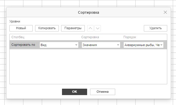 Возвращаясь в окно сортировки, выберите в поле «Сортировать по» нужный столбец (например, столбец с видом животных), а затем нажмите «Ок». Сортировка будет применена ко всему столбцу, при этом связи между данными в строках сохранятся.
