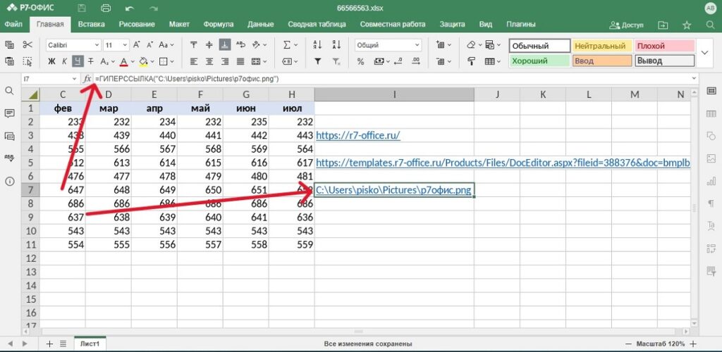 Вставить в таблицу «Р7-Офис» гиперссылку на сторонний документ можно за пару кликов. Это может пригодиться, когда данные в таблицу внесены из другого документа и надо сослаться на этот источник.
