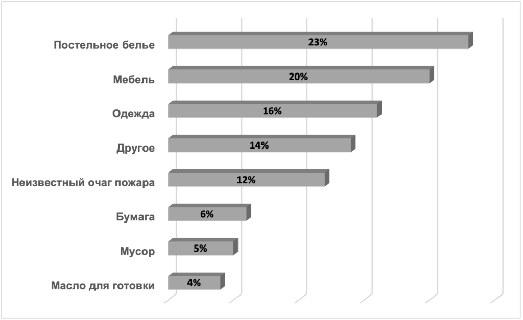 В подавляющем большинстве случаев возгорание начинается внутри здания.