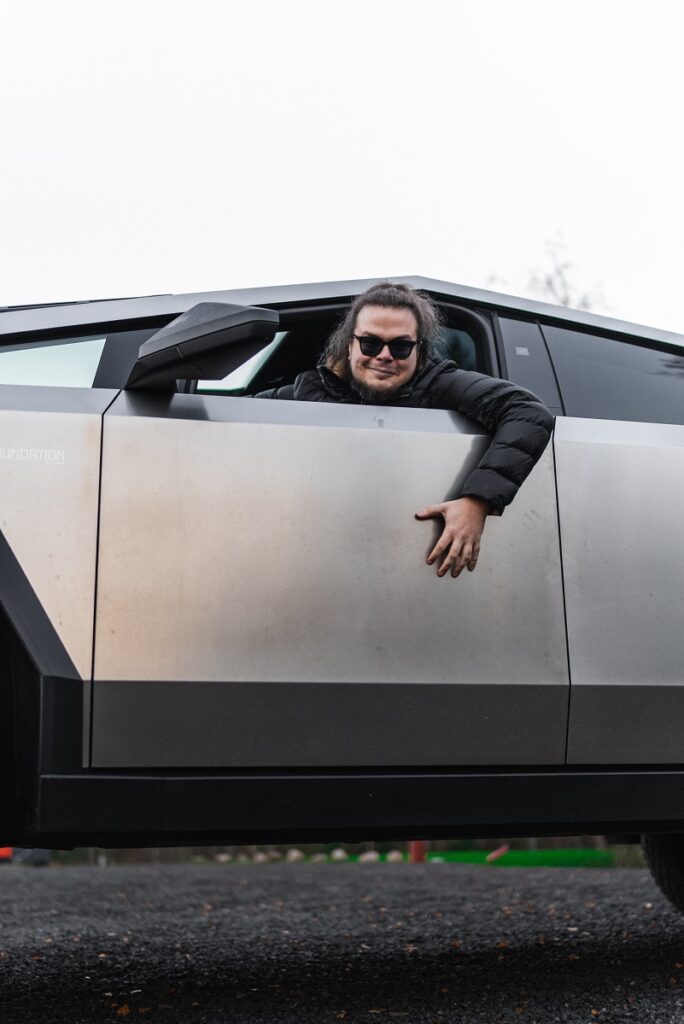 «Идея покупки у меня возникла сразу после того, как Илон Маск объявил о начале продаж в конце 2023 года. Было презентовано две версии «Траков» — Long Range (600 сил и два электромотора) и Cyberbeast (825 сил и три электромотора). И я сразу понял — хочу Cyberbeast! Ведь это самый быстрый в мире пикап, который разгоняется менее чем за 3 секунды до 100км/ч!», — поделился Саня Булкин.