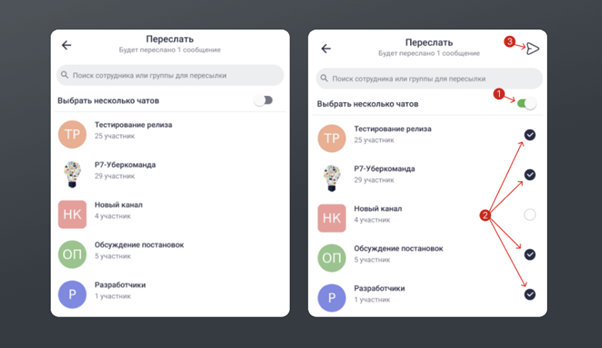 В «Р7-Команде» появилась возможность пересылки сообщений в несколько чатов